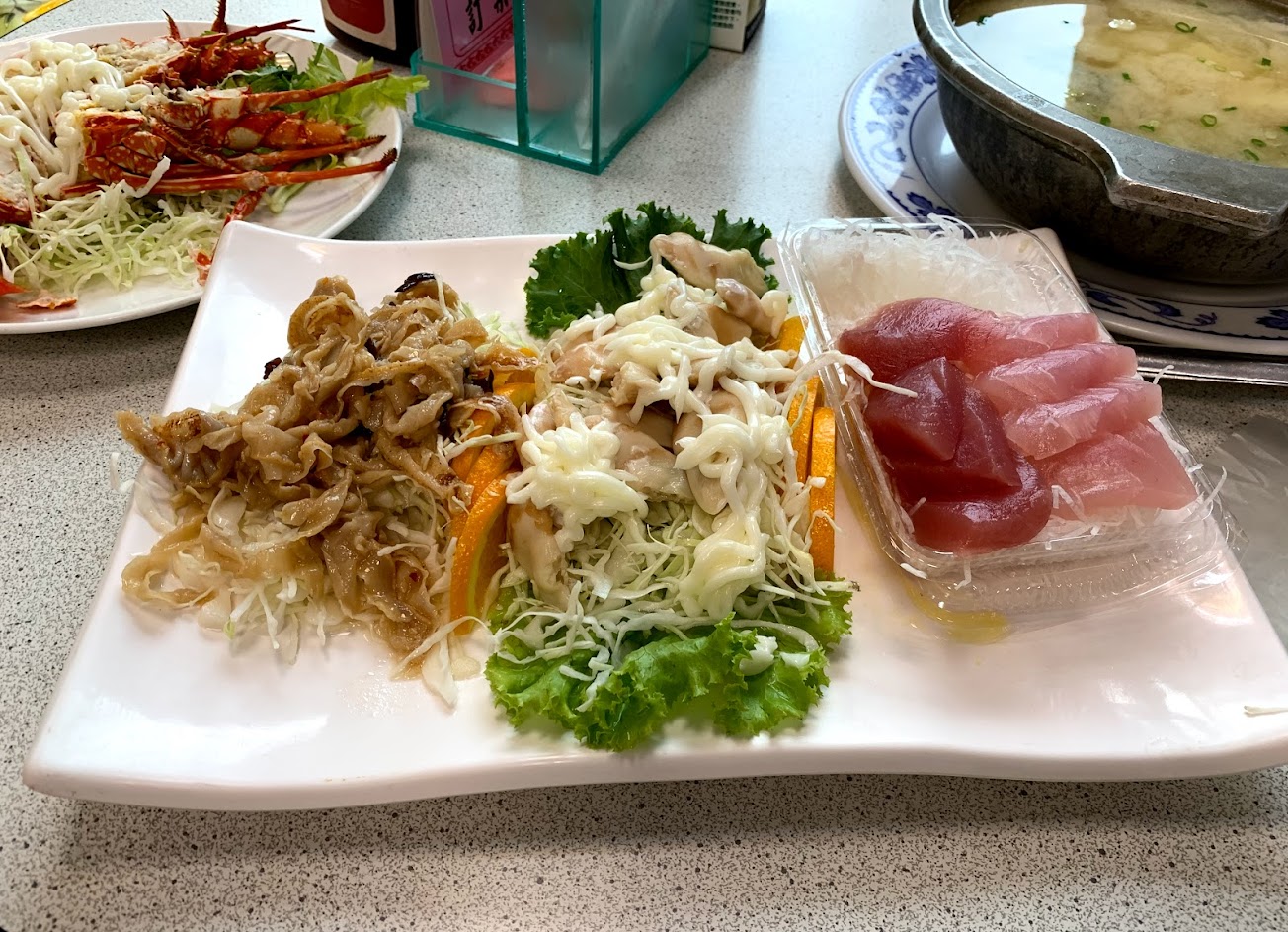 超快的出菜速度、餐廳內環境整潔、很好吃的曼波魚。今日點的是炒海菜、龍蝦沙拉、曼波魚、生魚片。