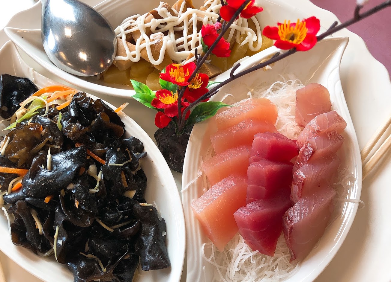 當天很早就到店面了,還沒甚麼人,服務人員都很【親切】,點了四樣菜當作當天出遊的開端,分別是【涼拌海菜】、【鮭魚生魚片】、【清蒸黑喉】及【炒蛤仔】,雖然新鮮,但吃起來口味覺得普通,並沒有特別覺得驚豔的菜色,但整體而言,被很優秀的服務滿意。