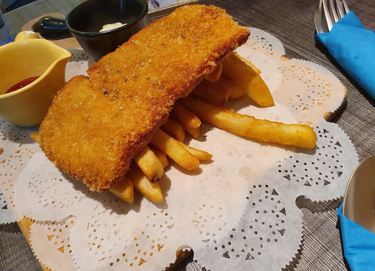 炸魚薯條好吃,油滿乾淨