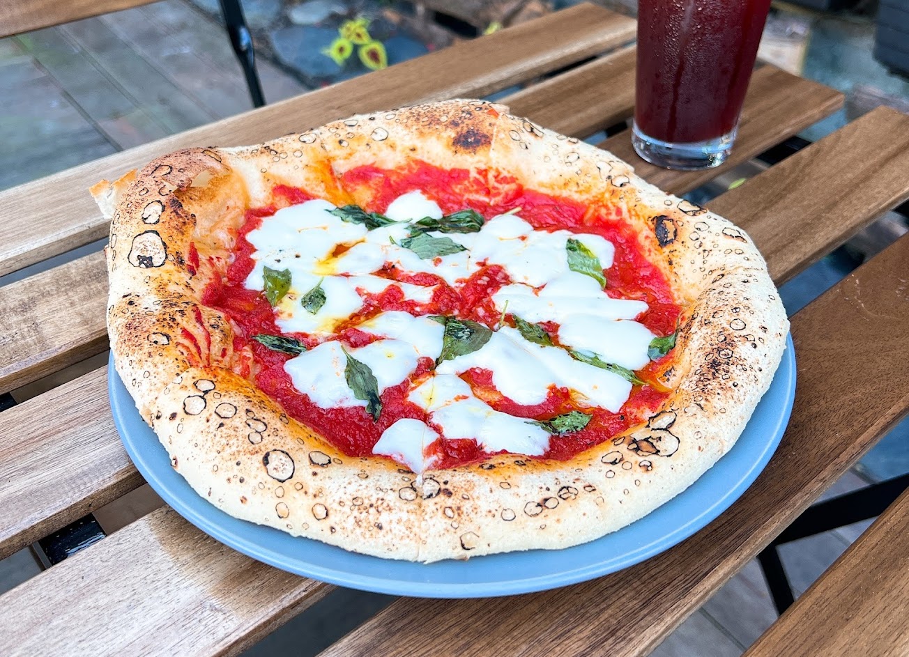 瑪格麗特比薩是手作的那種口感 味道上是最簡單卻是很經典的比薩口味 很單純但風味很耐吃 一個人吃了快半個都還不會感覺膩?