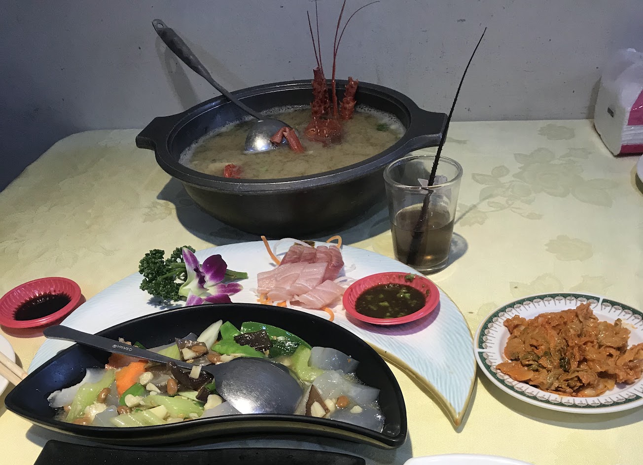 價錢透明~招待豐富^^ 點龍蝦,龍蝦血酒也會附上(酒後不開車) 擺盤活潑,料理工佳~