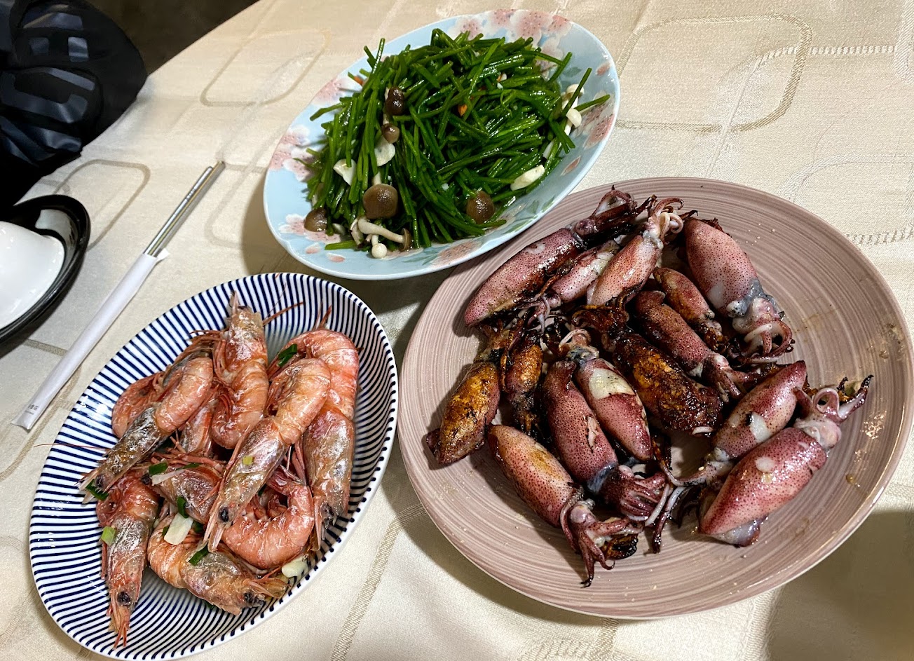 店裡最美味的就是小捲吧,輕烤就吃的到鮮甜Q彈的海味。炸花炸丸好像是南方澳必點而且絕不踩雷的食物,炸得酥脆咬得到大塊的花枝。白蝦也是鮮度保證。老闆的選酒品味也是不錯,海產攤第一次看過有買白酒和氣泡酒。真的是一整個滿足。