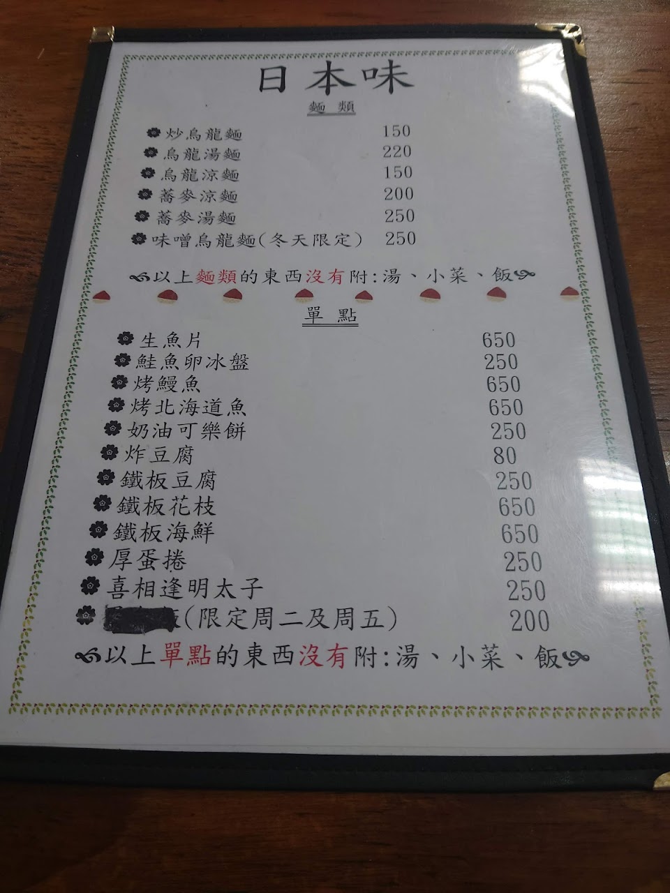 已光顧多年,食材的味道掌控跟新鮮度始終如一,老闆是日本人,用道地的口味跟手法用心製作的料理感受得到,闆娘的個性熟的人都懂,新顧客可能會有點不太習慣她的熱情,她會嚴格管控客人點的餐食是否份量太多導致無法完食,總結就是怕浪費食材,這點很多店家不會在乎,但在這間幾十年老店裡卻是希望客人吃好、吃飽、吃剛好的心意,為什麼我這麼了解,因為我從小就看他們經營小店到現在至少30個年頭