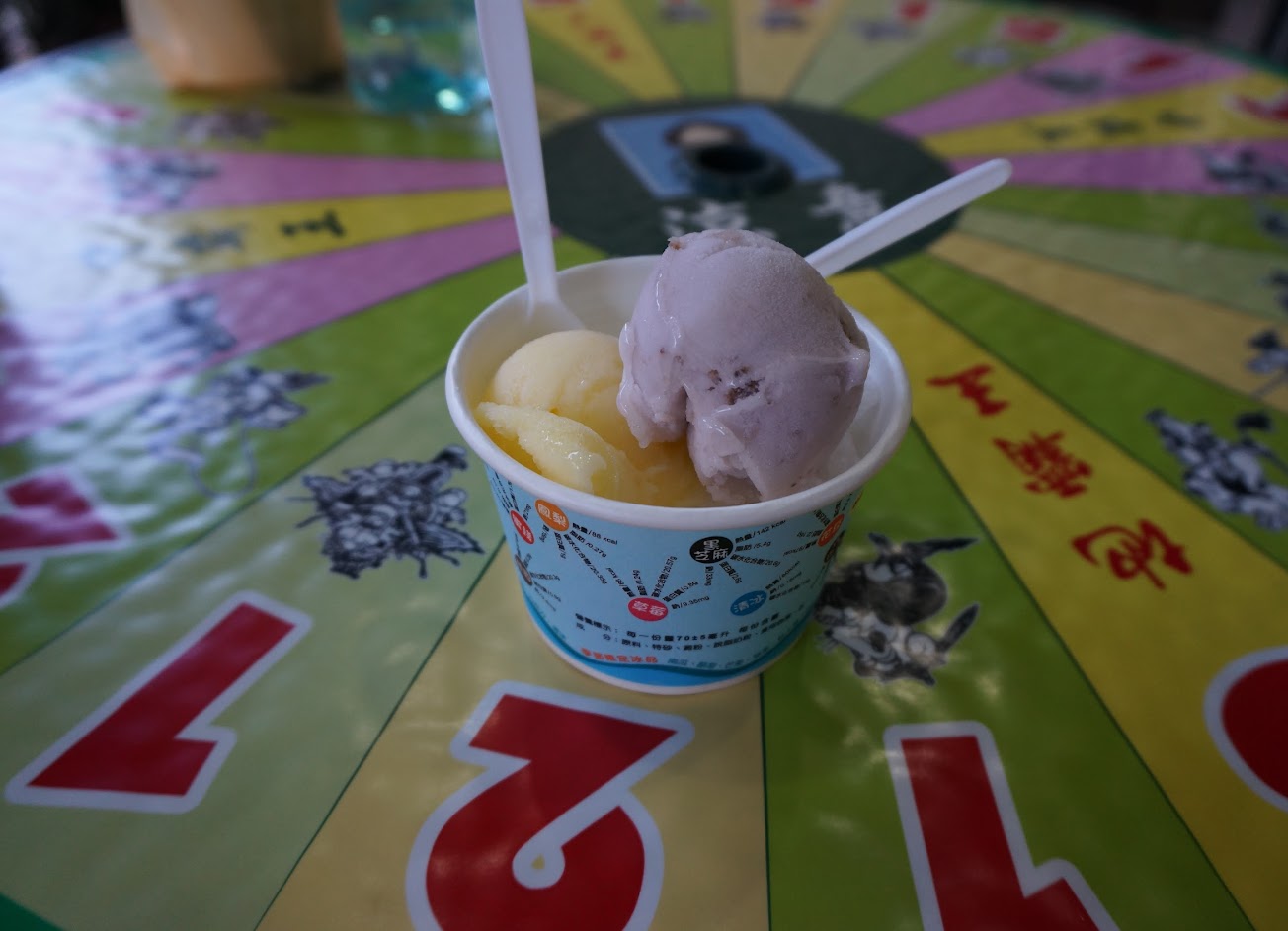 孩褆時代傳統冰淇淋口味,喜歡桂圓、芋頭、花生口味,可選餅筒或紙盒裝,三球35元,不是最好吃的,卻是最真材實料的。