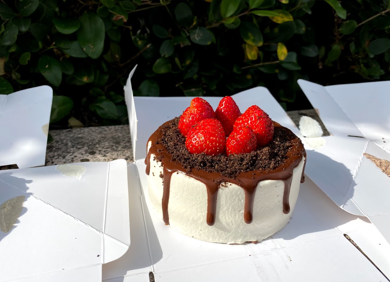 戚風蛋糕真的很威,打開盒子和它首次見面,外型不但美,還有潤澤、柔軟但又不塌陷的口感,馬上就被圈粉。
