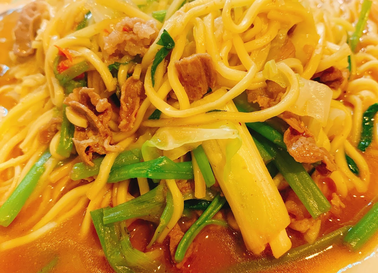 羊肉炒麵偏油,但味道很好。