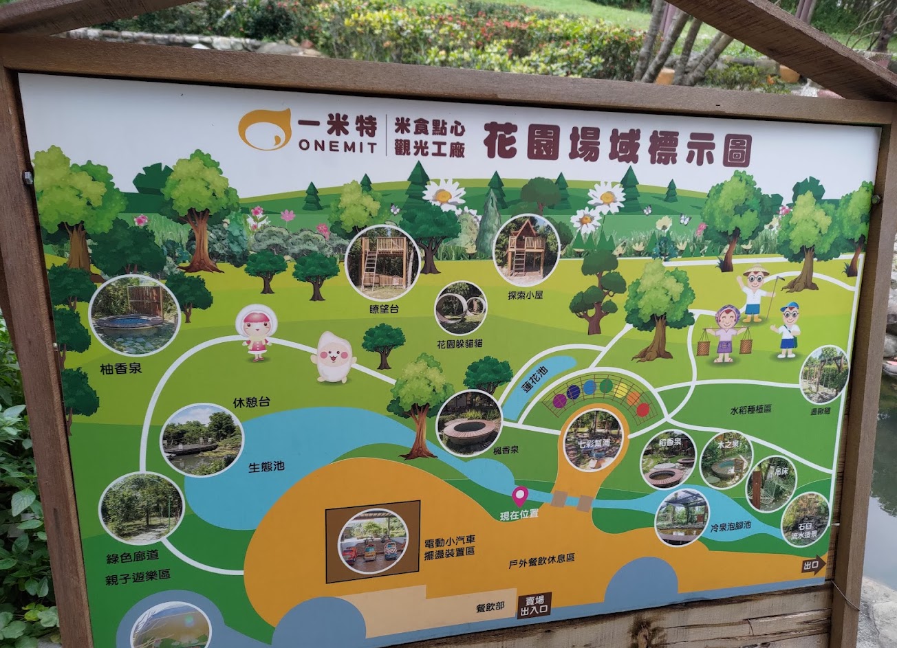 裡面的花園場域有: 七彩幫浦,稻香泉,木之泉,冷泉泡腳池,吊床,鞦韆,石臼流水造景,探索小屋…還有其它區域能晃)