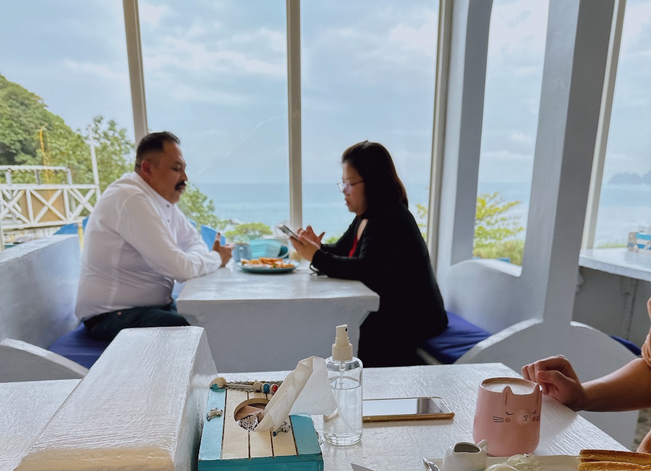 店內慵懶的音樂,窗邊位置可觀賞海邊美景 ,舒適放鬆的下午時光。