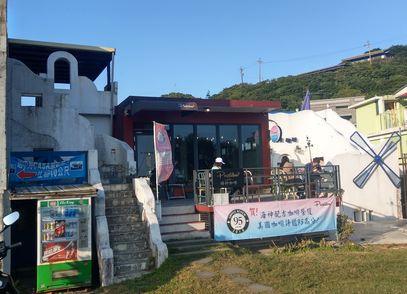 就在情人灣旁邊一整排的咖啡店,規劃非常完善的停車場停車不用錢,今天來的這一家海神咖啡,每一個人都要訂一杯飲品,有限時間90分鐘,看好菜單之後到櫃檯點餐就可以了,個人覺得咖啡還不錯,地下室為洗手間,規劃的不錯也很乾淨,如果好天氣的話坐在外面可以看浪花,
