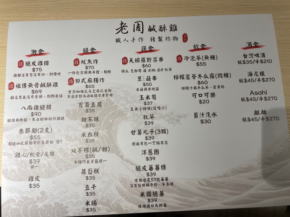 2024最新在地推薦餐廳的菜單_老周鹹酥雞 桃園龜山店 職人手作 精製炸物的菜單、圖片