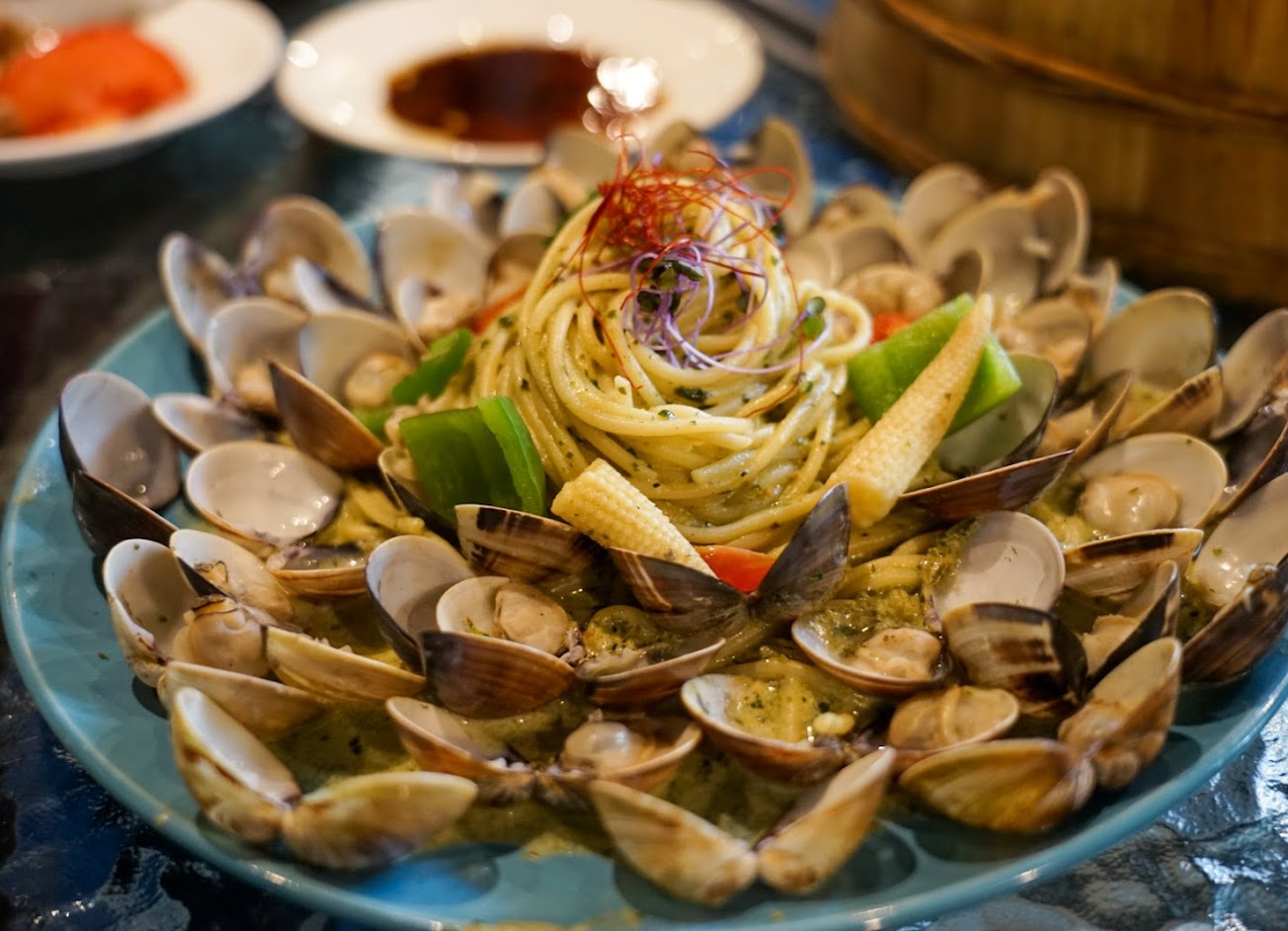 招牌的蛤蠣麵乍看蛤蜊很多,但蛤蠣肉過熟,肉質不優;溫泉魚泡腳池座位很少,被這噱頭吸引來的人八成都要失望了⋯⋯