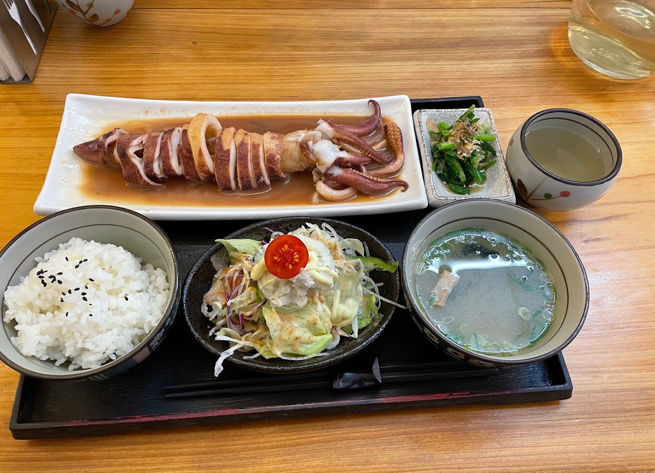 推薦烤透抽,跟松板烤鹹豬肉,生魚片定食,一夜干定食