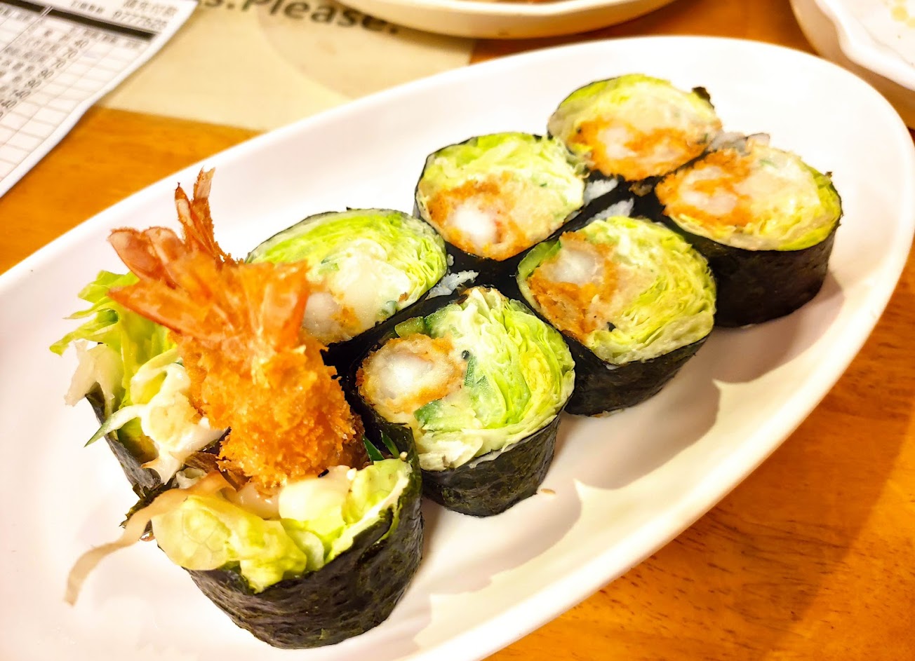 生魚片如傳聞中的厚實,吃起來也很新鮮✨樂屋招牌捲相當優秀,炸蝦搭配生菜,爽口不膩??