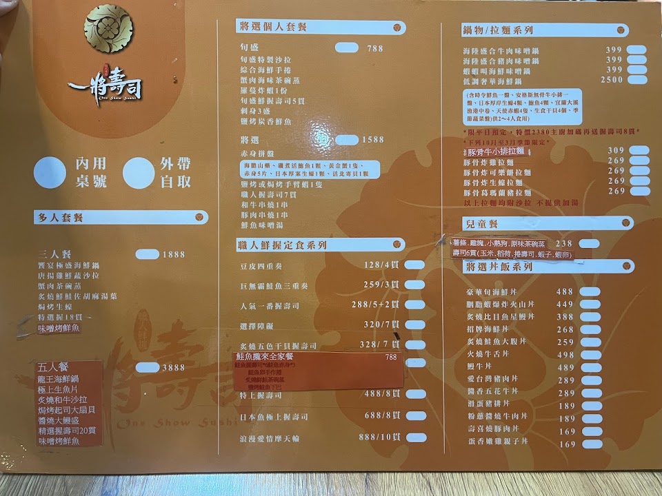 2024最新在地推薦餐廳的菜單_一將壽司 One Show Sushi的菜單、圖片