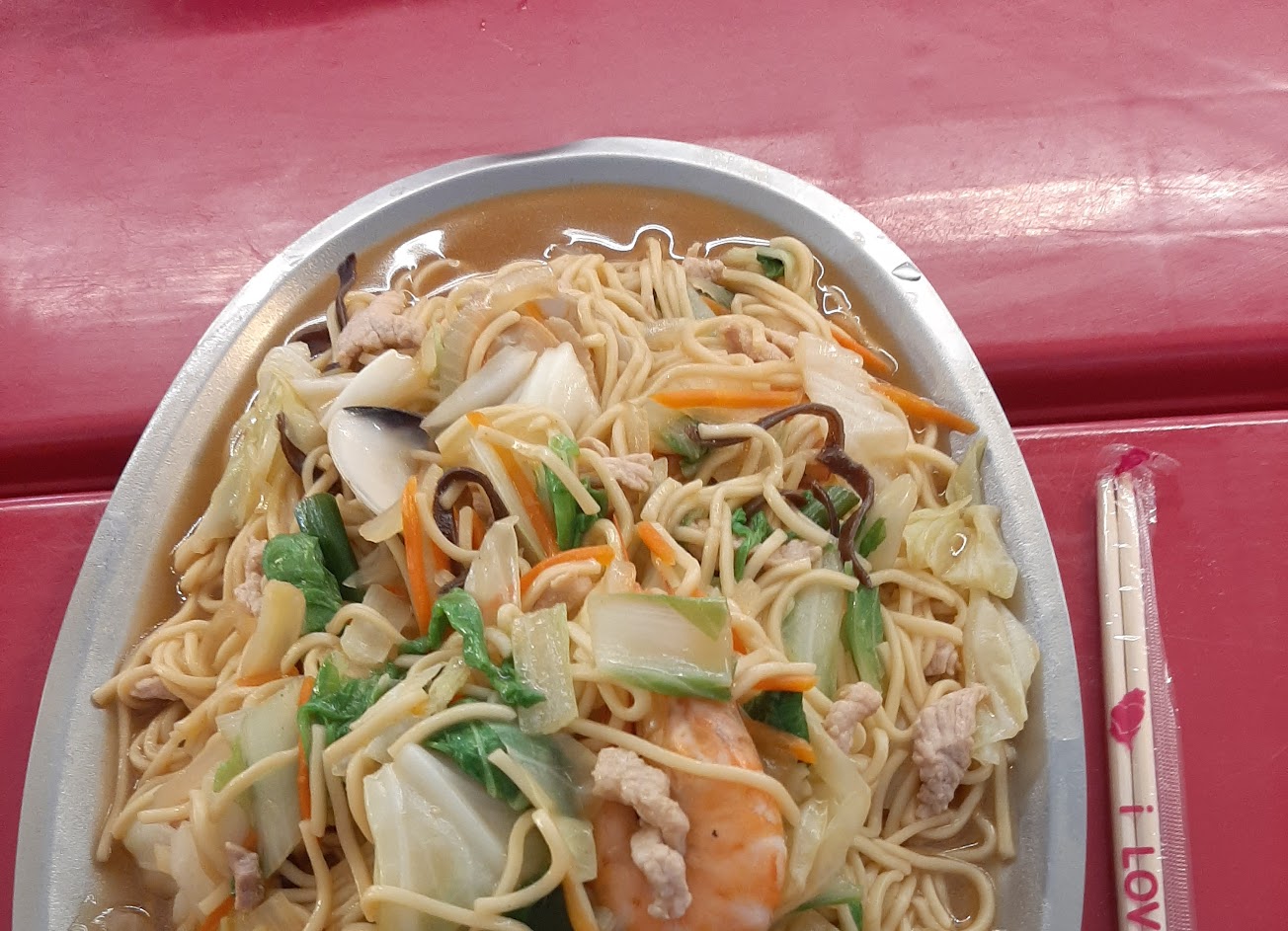 海鮮很新鮮,海鮮炒麵誇張大盤才100!