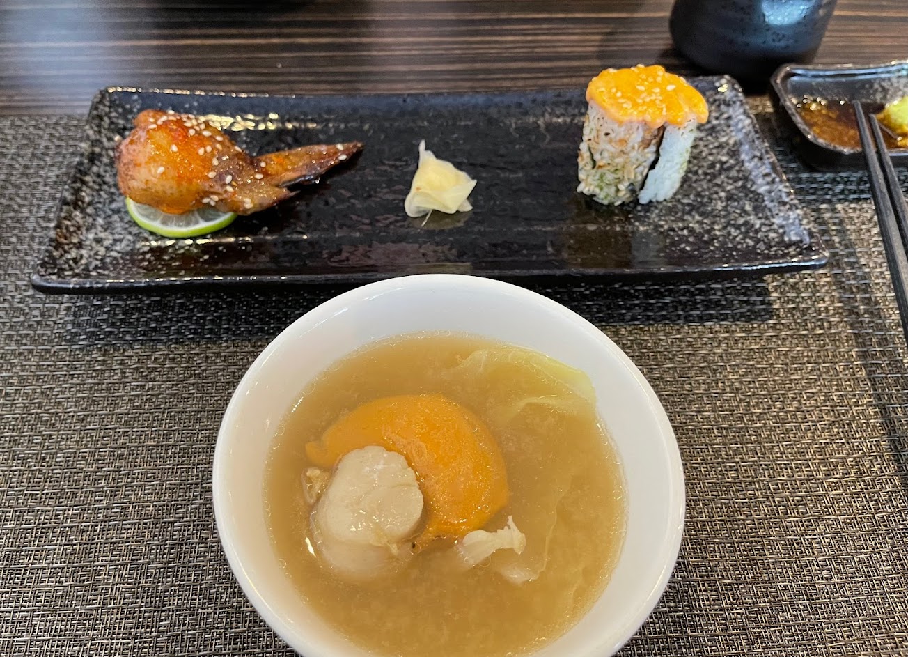 石狩味增鍋 古早味芋頭糕 綜合刺身 玫瑰蘋果醋