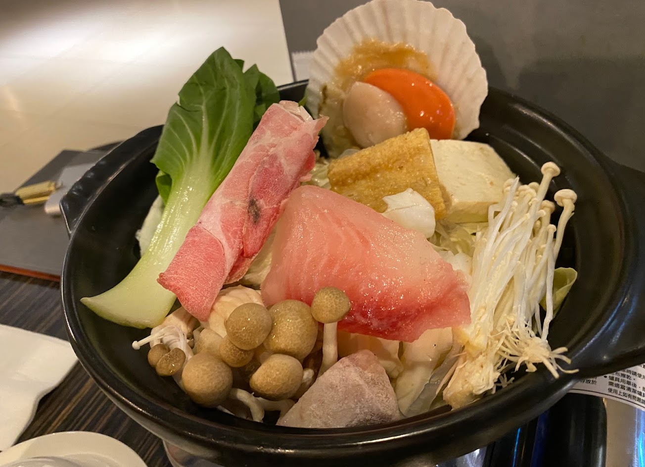 室內空間算大,人員服務佳速度快,餐點採套餐的方式,整體食材新鮮,個人推海鮮跟雞肉的選擇及前菜用沙西米來吃不要用炸的方式,火鍋湯頭好喝,芋頭糕鹹香扎實好吃,甜品表現普通,飲品蕃茄汁不錯。