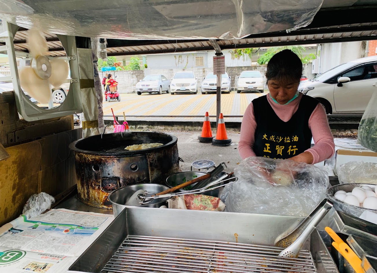 在旁邊的停車場裡,炸的比較偏軟,口感跟其他間還是有差異,蔥集中在中間,蛋裡面。