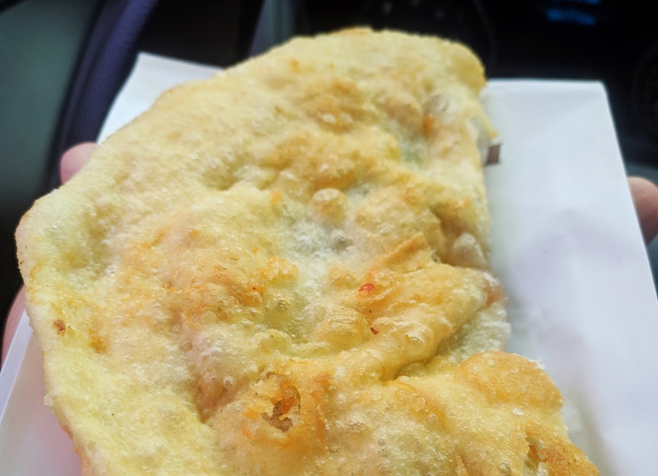 便宜好吃,開車肚子餓可以吃,雖然看起來人很多,但店家手腳快,一下子就拿到,麵皮Q,蔥花集中在中間,咬到中間鮮甜蔥花味,cp值算高