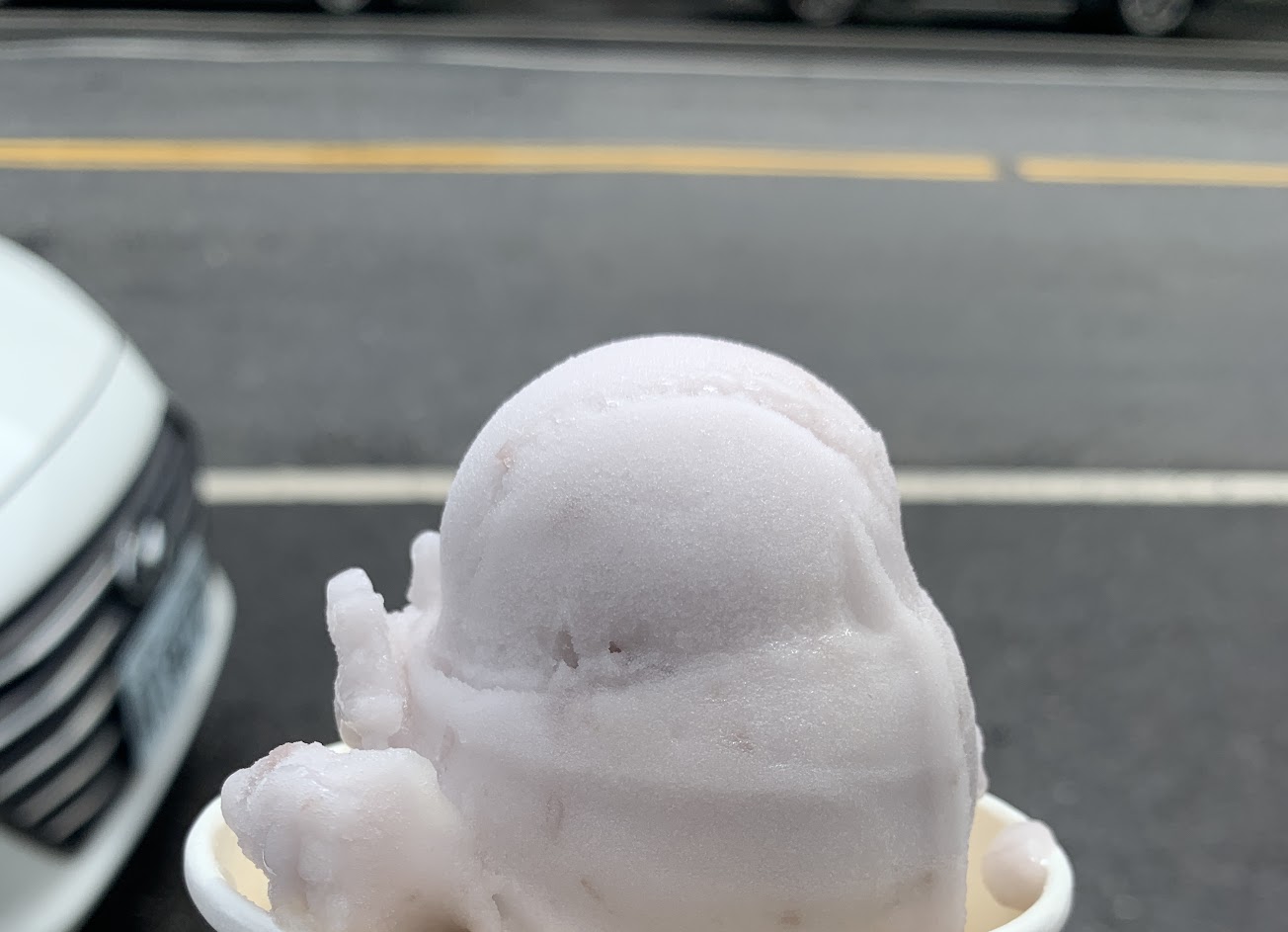 在地開業超過60年,一開始是叭噗的批發商,蘭陽溪以北幾乎都跟他批貨,自產自銷後逐漸獲得好評,也慢慢成為來宜蘭頭城必吃的觀光景點。 店家外有告示,開車來臨聽要停白線內,假日外面絕對都是一整排車。 口味一共只有6種,芋頭、紅豆(大)、鳳梨、花生、桂圓和紫米,1杯50元可任選3種口味,盒裝一盒是100元,如需要保麗龍是30元。 可能是因為叭噗沒有添加香料和乳製品,天氣熱很快就融化了,在35度的大太陽下,如果車停太遠,過個馬路或在室外曬個3分鐘就融光了,最後變果昔。 芋頭是招牌口味,有淡淡的芋頭香,鳳梨有一點果肉,但味道很淡,花生碎很硬,味道不夠香,可能是因為吃太多有含乳製品的濃郁冰淇淋習慣了,真的覺得味道非常淡又稀。 雖然3顆50元不貴,但整個感覺就是給外地觀光客來朝聖吃的。