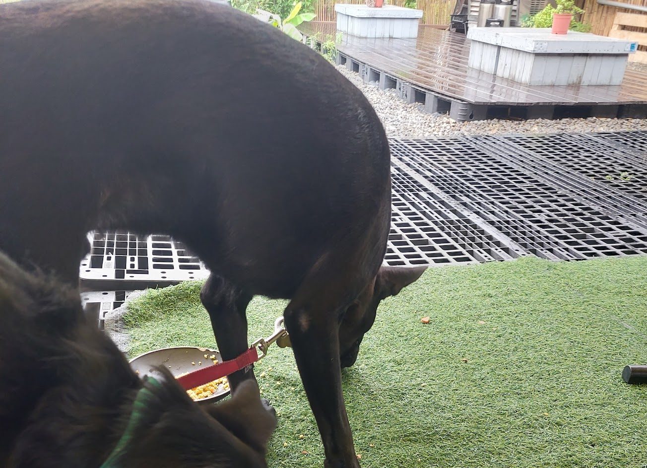 東西很好吃 還有可愛狗狗陪玩陪吃?