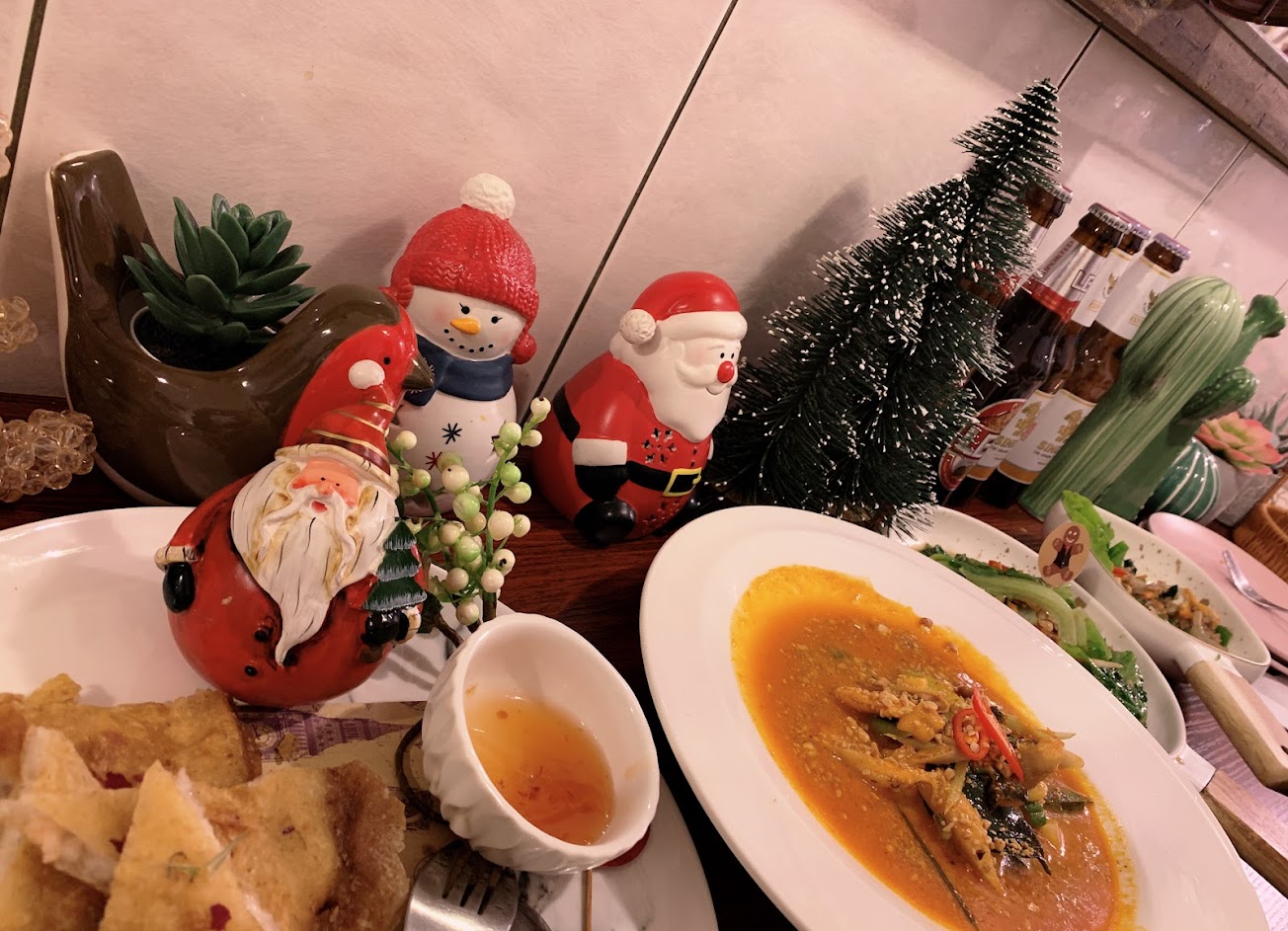 老闆待客極為親切及用心,除了擺盤之外,餐具和裝潢擺設也很應景,充滿溫暖的聖誕氛圍。 餐點當然一樣好吃得無話說,無論是打拋豬、香茅花枝或是帕泰都非常道地,是個愉悅的用餐體驗。 建議可事先訂位及預訂餐點,會有更多美味的選擇。