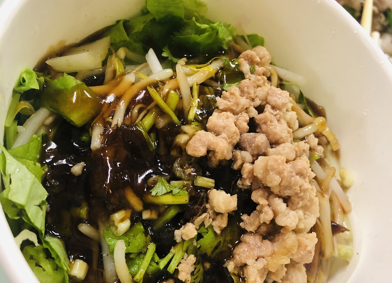 乾粄條鋪上韭菜豆芽和香味濃郁的香菜再淋上特製滷肉汁,讚讚的一大碗,完美的中餐,值得推薦給大家。
