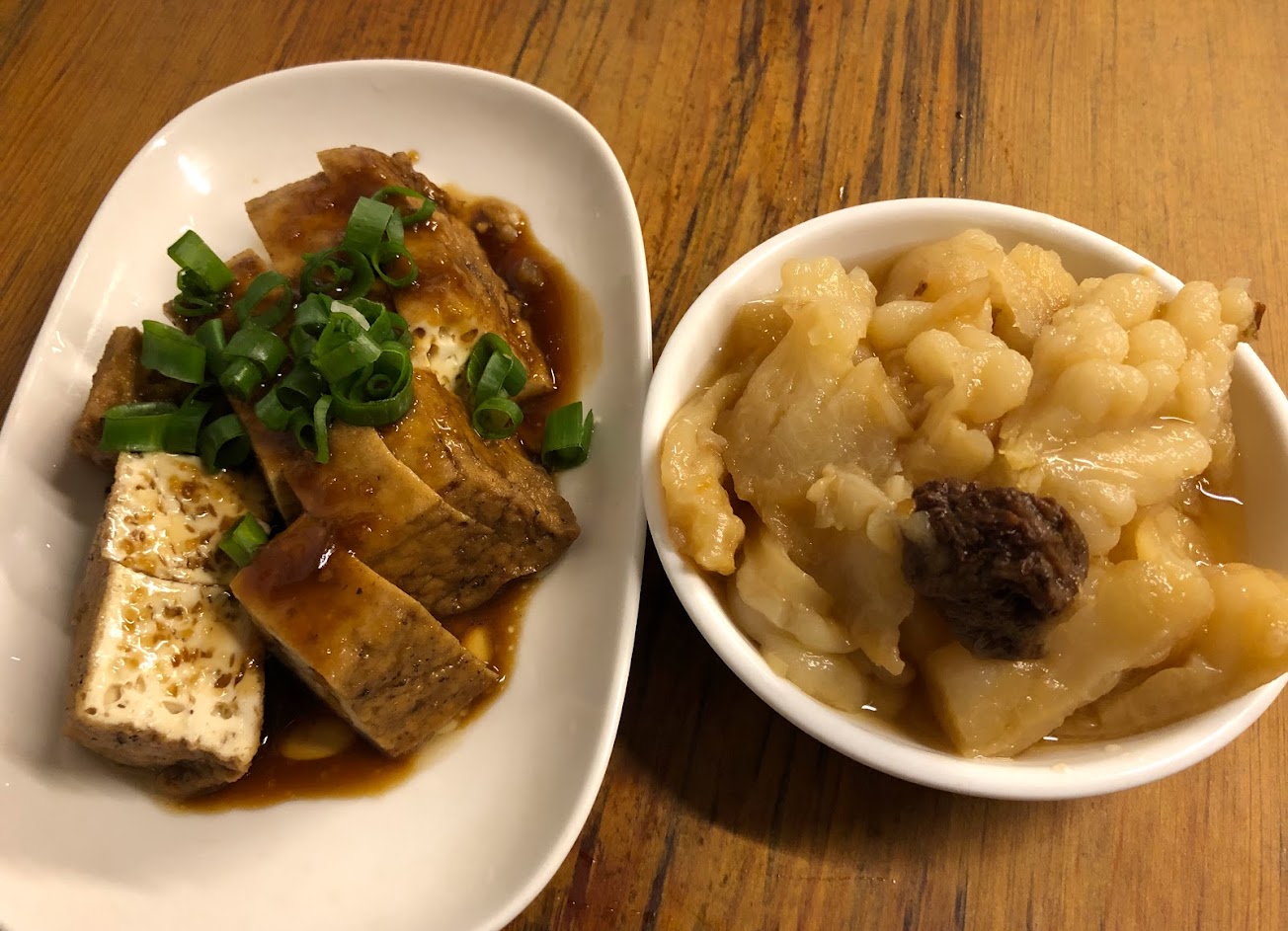 油豆腐:口感吃起介於大黑豆干和豆腐之間,不是一般的油豆腐,滷的入味好吃。