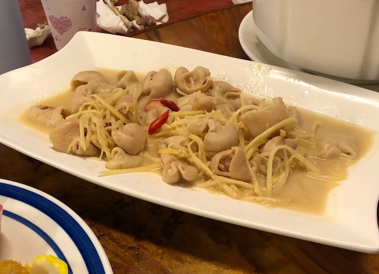 客家油雞 薑絲炒大腸 鹹菜湯
