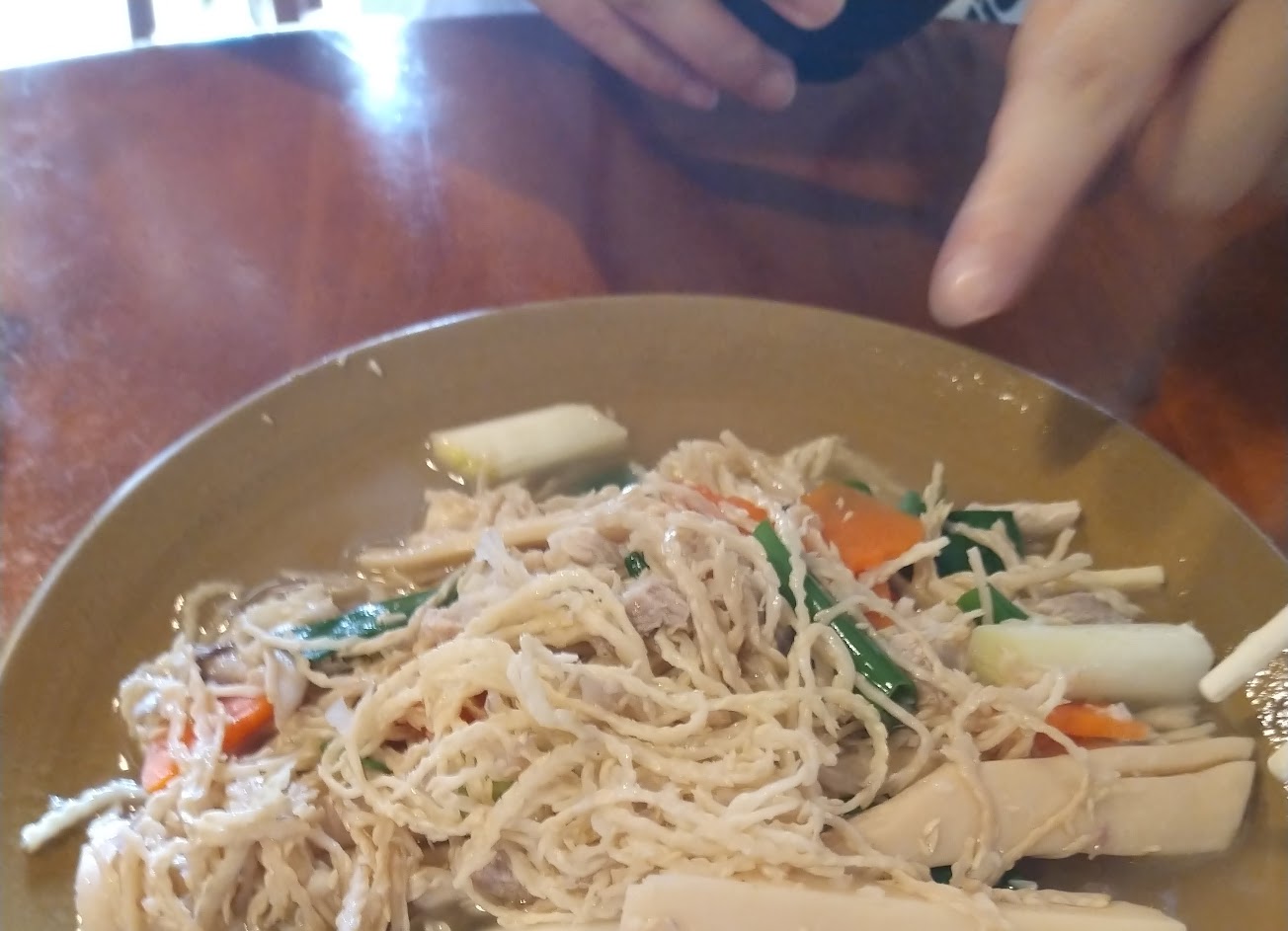 點了 海鮮蟹黃豆腐、七層塔蛋、蔥爆牛肉、滷筍絲 -蟹黃豆腐用裡面有加三色豆,整體味道很清淡 – 七層塔蛋烘的澎澎的很軟嫩 – 蔥爆牛肉的肉片偏小,大致上還可以 – 滷筍絲的油香不夠足,味道也偏清淡了些