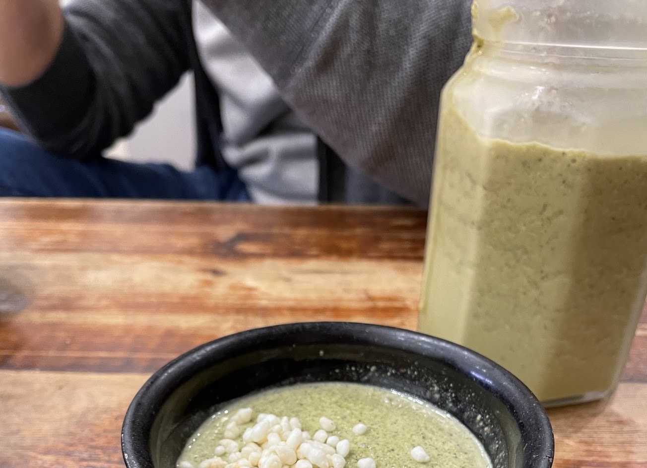 擂茶DIY好玩,但用餐到一半覺得被打擾, 一群國外遊客站在我們身後,其中一位口罩沒戴好的男生沒詢問的自動坐下我們這桌說:我坐一下。