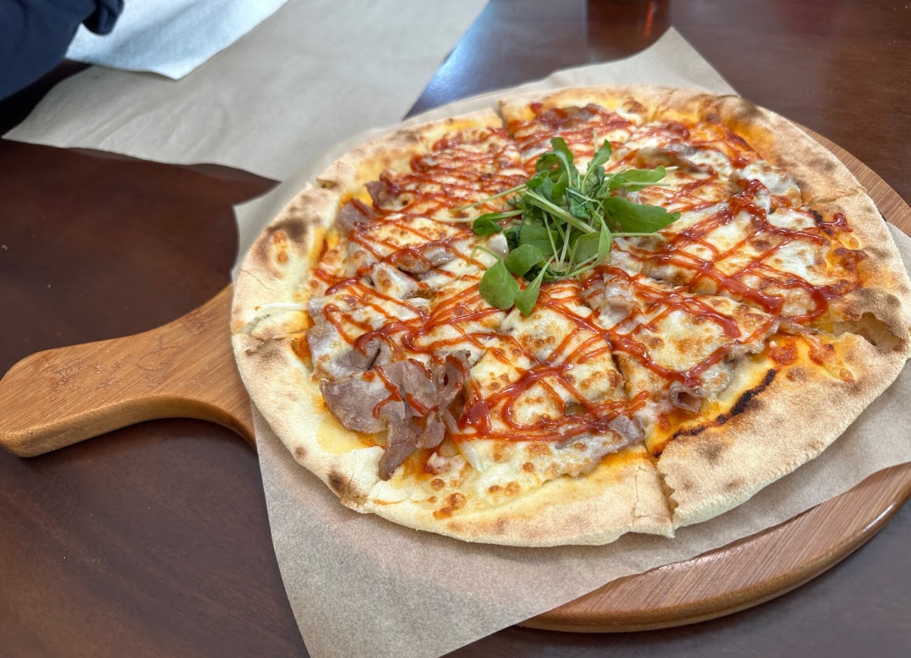 在一個你意想不到的地方,居然會有人想開披薩店!而且還很好吃?披薩餅皮是薄的,另外還有甜點飲料可以選擇。
