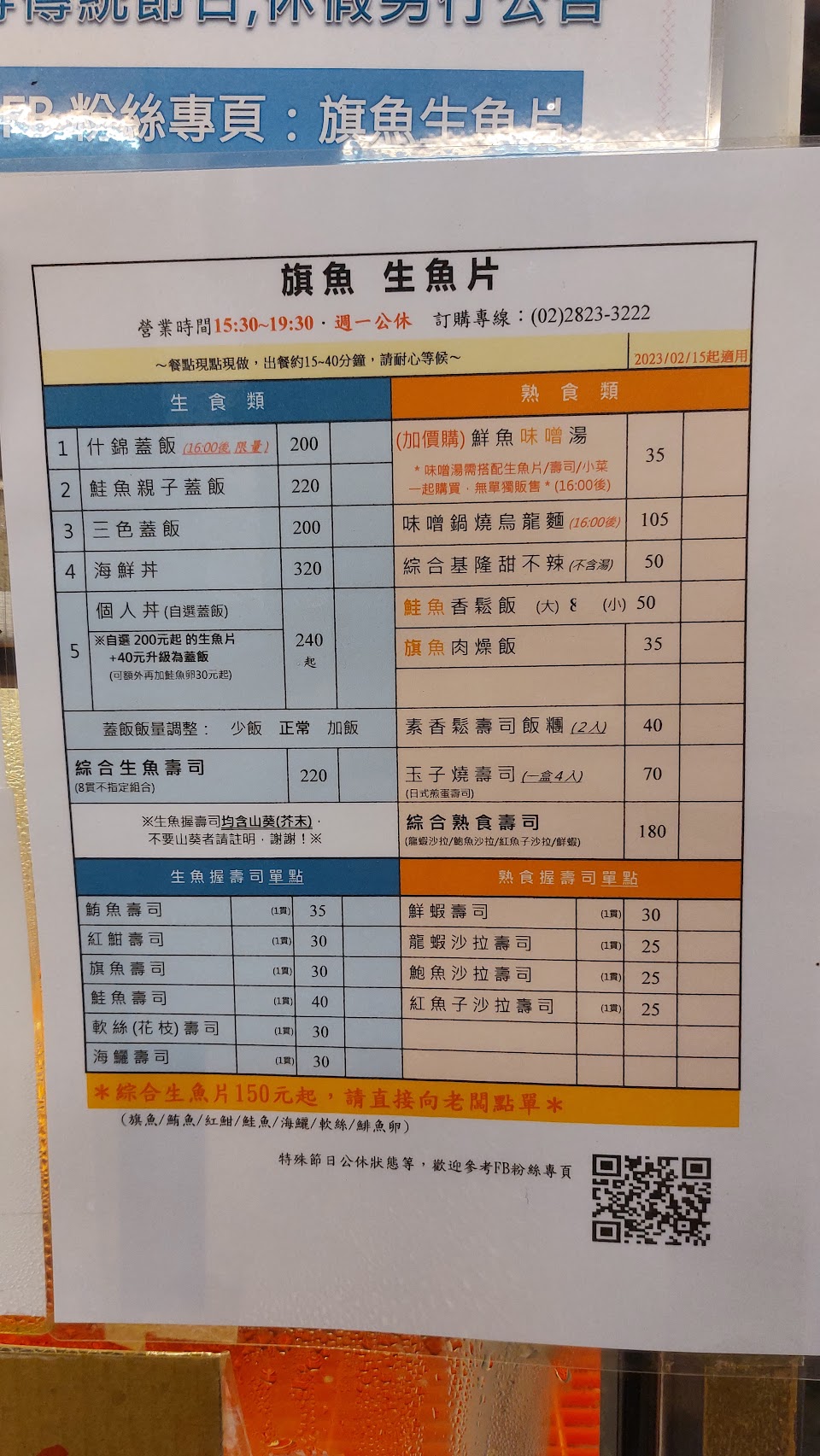 原本專營生魚片多年,後來兼做生魚壽司,品質大勝爭鮮等連鎖店,生魚鮮度和醋飯都不錯(鮮度明顯強過爭鮮,解凍程度掌控剛剛好),算是平價美食,只是營業時間只到19:30,太晚買會不到生魚壽司,只剩散壽司或是生魚丼飯。