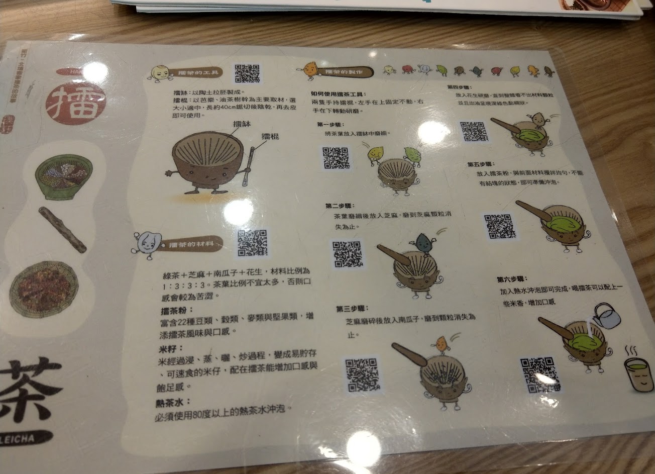 個人抵銷$90,可以來這邊做擂茶DIY($240),大概可以三人各喝4.5小杯。麻薯$60,覺得很好吃,大概也可以3.4人吃一個。也有粄條等素食可以吃,所有熟食都是用趟的。店員服務很好,環境也很乾淨,可以先和店員借菜單再決定要不要進來,有時候也有招待的茶或小點心,下次有機會可以會再光顧。
