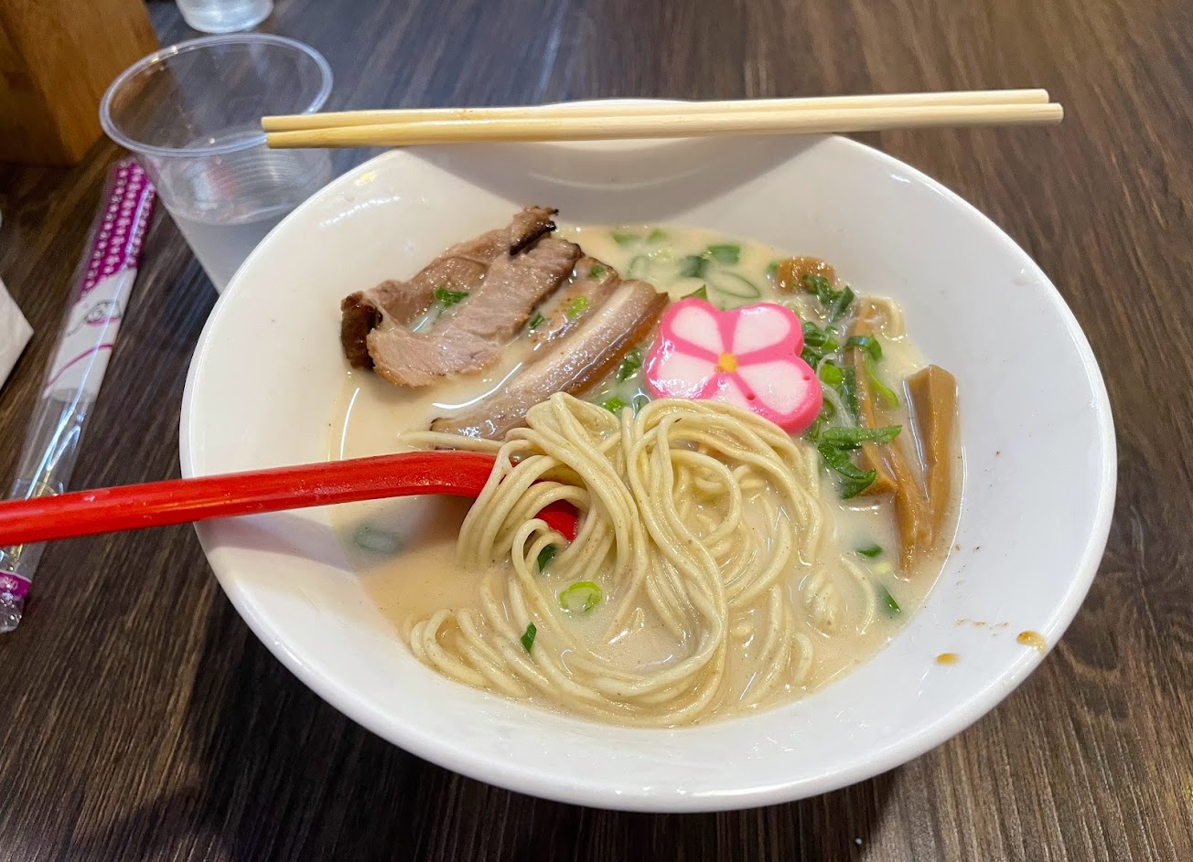 豆芽和葱量很多,吃不出面条有柚子味可惜,叉烧很硬,汤底层次单一,汤是浓,但是只是浓也很可惜。