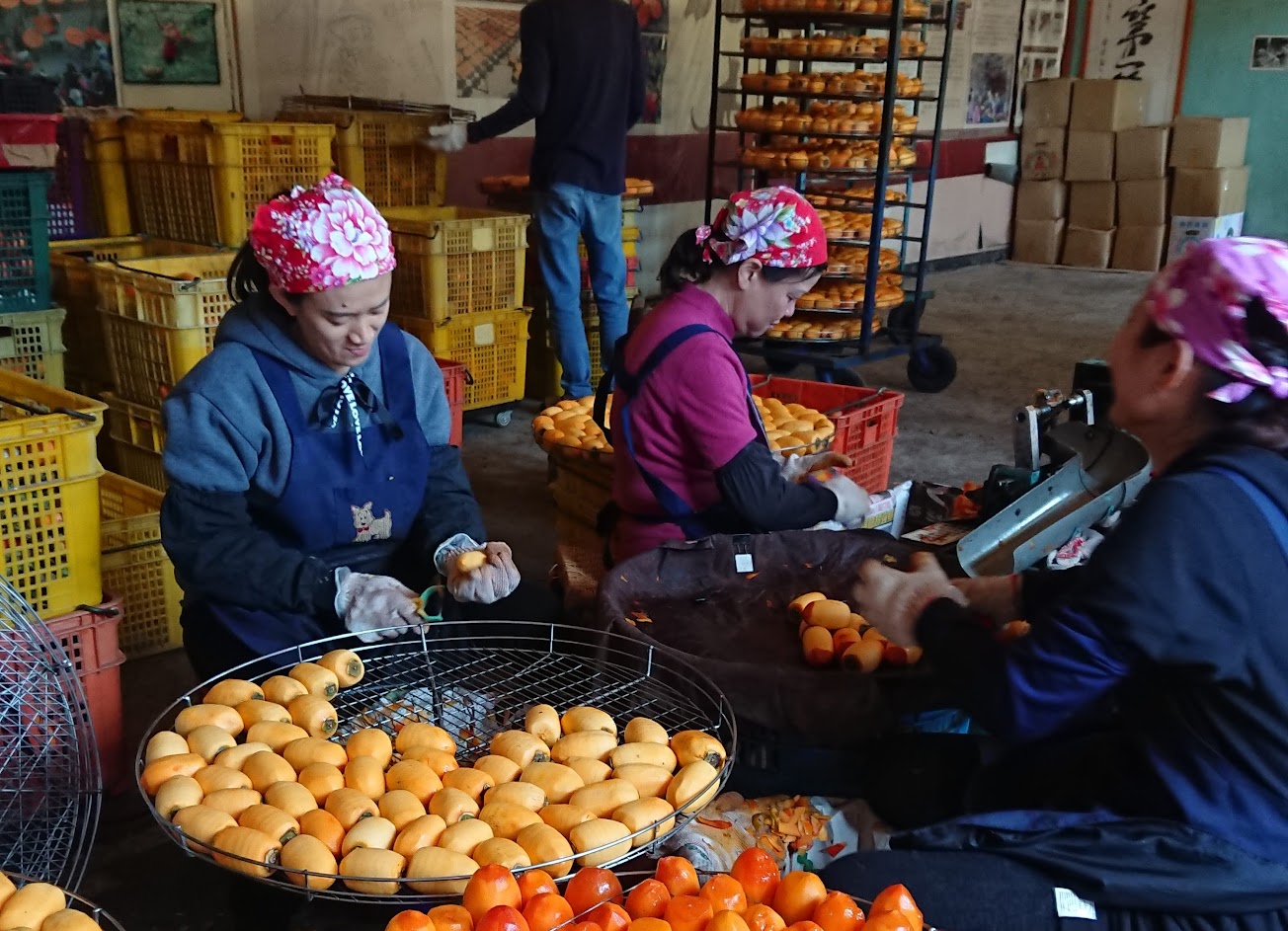 做柿餅季節來臨,新埔旱坑一帶大小柿餅加工廠異常忙碌。