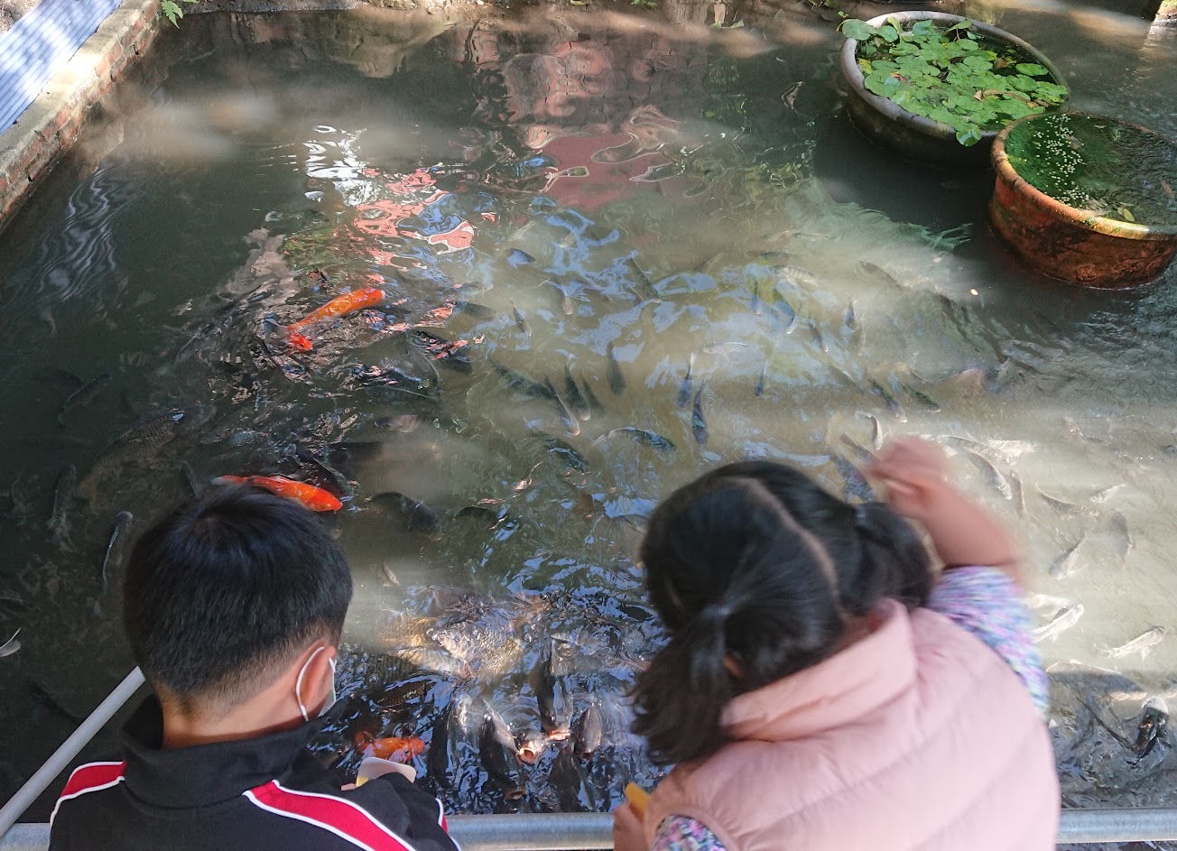 外面有可觀參觀的魚池,小孩們開心餵著肥美的鯉魚,讓我默默留下了口水? …
