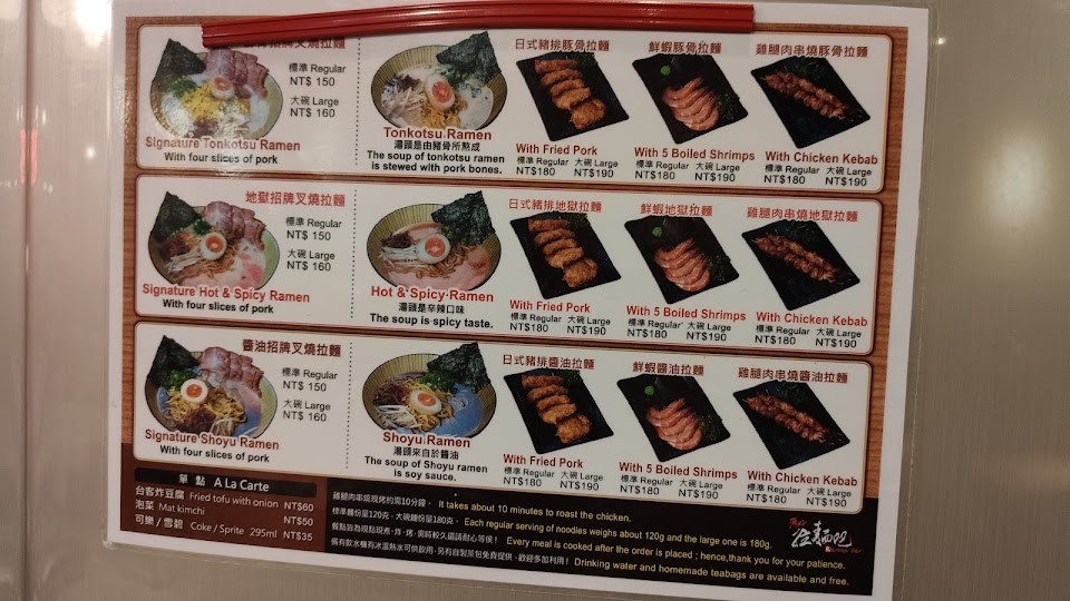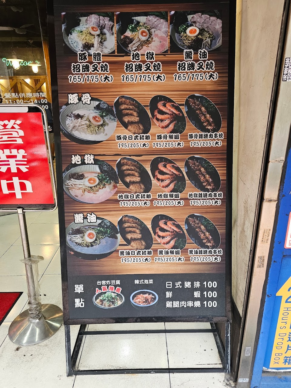 吃過豚骨跟地獄、叉燒跟豬排,都很不錯,尤其吃過附近其他家拉麵店之後覺得還是這家好吃。地獄可以跟店家調整辣度。