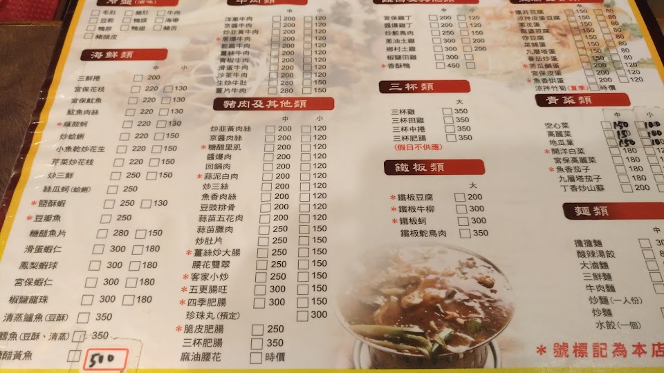 宮保雞丁 清蒸鱸魚 魚香茄子 三杯田雞 五更腸旺