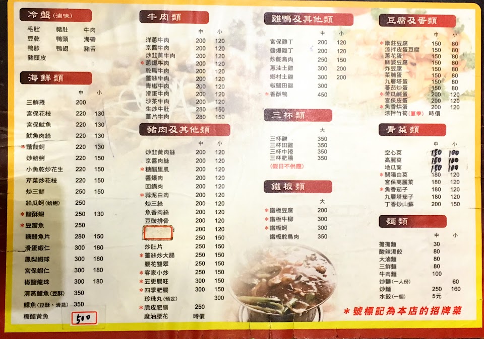 不知它有多少年的歷史了以前還在建興路的擁擠店面。30多年了還看得到一些老面孔也不知道誰是老闆老闆娘或廚師。菜色不錯口味不錯價錢也還OK。只是菜單變化不大。光顧的次數數不清了。因為是在地人所以吃久了也會怕啊。偶爾還是會去畢竟兒女還很喜歡吃它們家的。PS別點合菜。單點(切記)