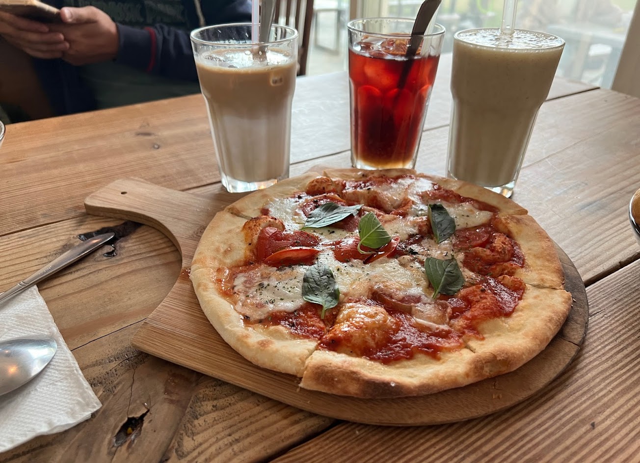鹹豬肉披薩好吃!蛋糕好吃!飲料也不錯!