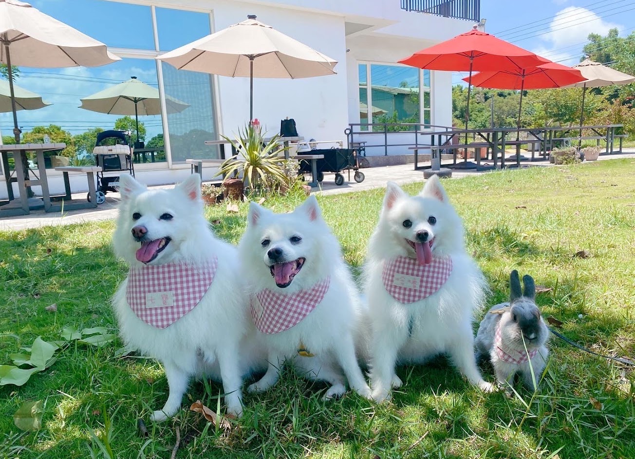戶外有一個大草坪,很適合帶狗狗來喔