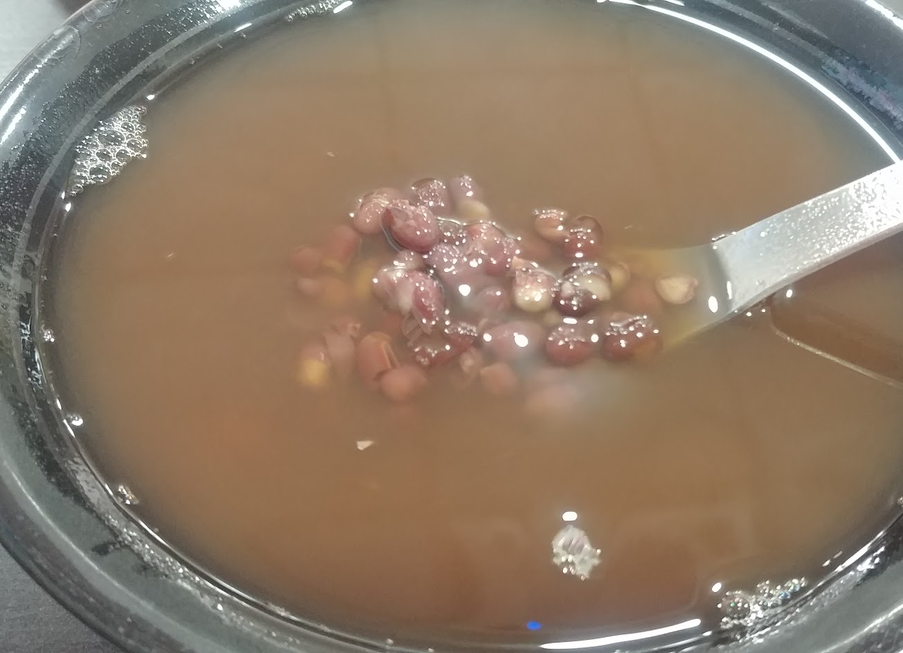 寒流來想吃碗熱呼呼的紅豆湯~紅豆湯拿在手裡覺得溫度不夠我客氣的麻煩店員可以幫忙加熱一點嗎?回說他們的溫度就是這樣.另一名店員有點不悅的叫幫我點餐的店員將紅豆倒出來在裝湯到碗裡.果然~東西還是溫的.走出店門口準備騎車時.看見那店員好像認為我在找麻煩.在那抱怨~我真的很客氣的麻煩妳們加熱了.果然東西騎車回到家變常溫了。吃起來完全沒有暖心暖胃的感覺..