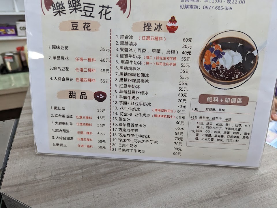 2024最新在地推薦餐廳的菜單_樂樂豆花、黑砂糖剉冰的菜單、圖片