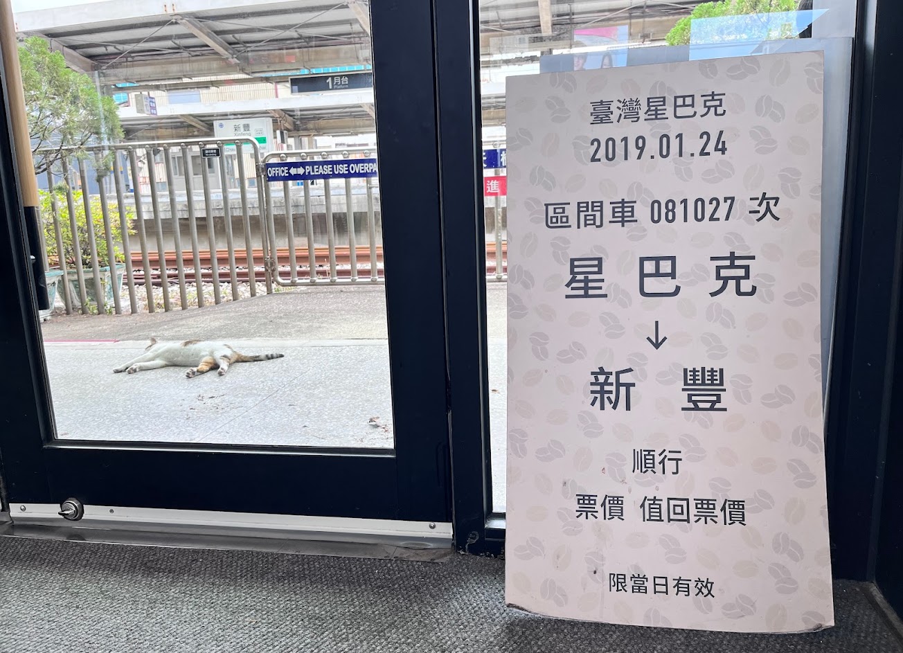 我從台中騎了很長一段路才來到這裡,只是因為它在星巴克的特價名單上。不過,我不知道有什麼特別之處。也許是因為它就在當地火車站旁邊?我唯一發現的特色是,靠在門上的假火車票……