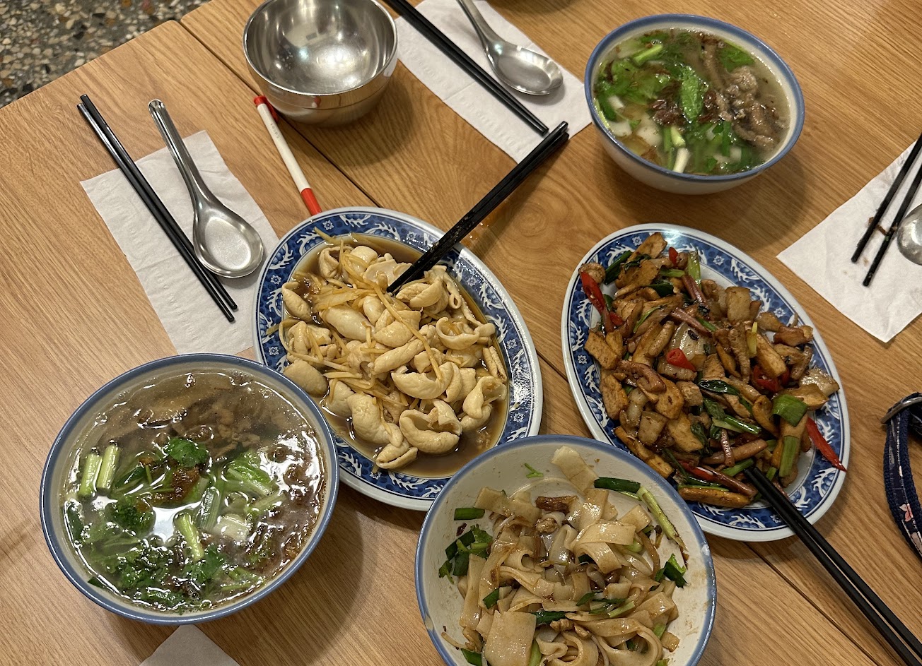 薑絲大腸 炒時蔬 鹹湯圓 客家乾麵