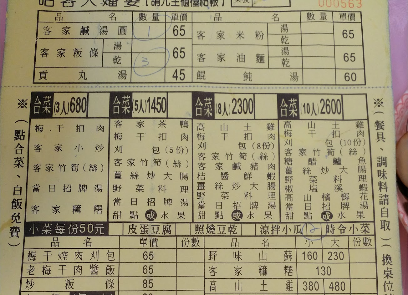 客家小炒完全不像客家人炒出來的味道.湯圓一點也不圓也太爛無味道.連香菇都沒有!梅干扣肉擺設好看卻不好吃!客家麻糬出菜就是冷的偏硬!四位大人點三人套餐沒辦法吃完…..因為完全沒啥客家味~
