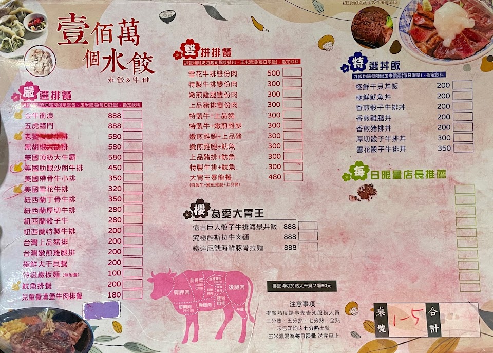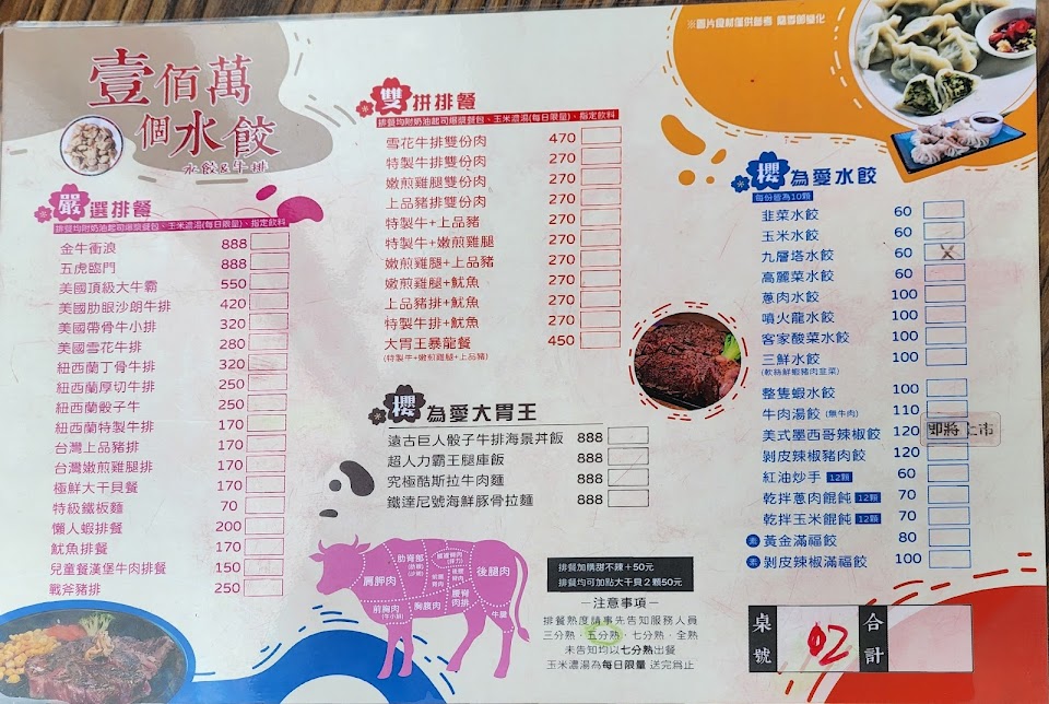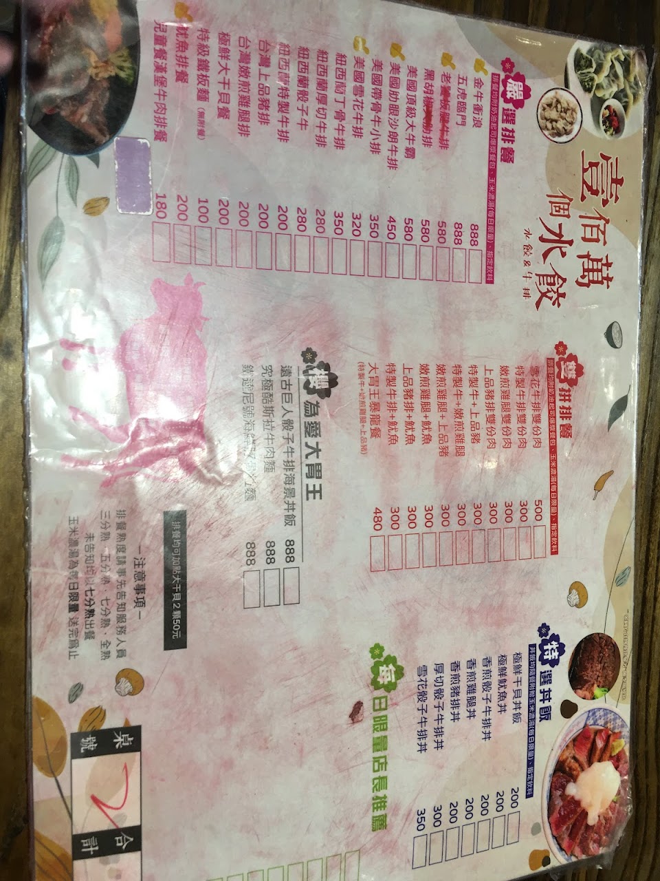 2024最新在地推薦餐廳的菜單_壹佰萬個水餃的菜單、圖片