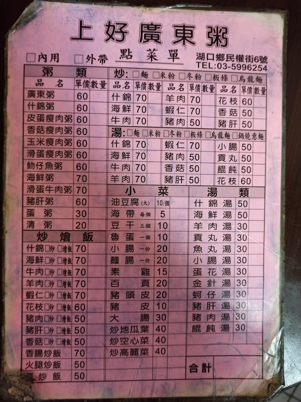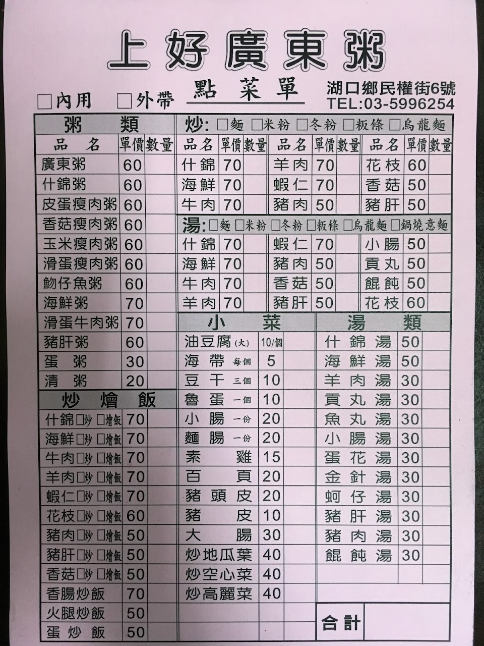 2024最新在地推薦餐廳的菜單_上好廣東粥的菜單、圖片