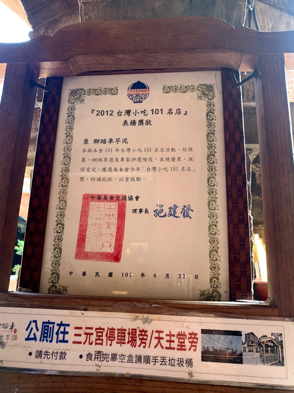 壺口老街的當地美味甜點——芋泥。有兩種口味,冰的或熱的。夏天,強烈推薦冰芋泥。甜、滑、有香味。冬天的時候,熱騰騰的芋頭泥是不錯的選擇。店裡是用一輛歷史悠久的自行車來裝飾或改裝的,非常獨特又有趣。最後要告訴大家的是,這家店獲得了2012年台灣最佳101家小吃店獎。下次,你一定要光臨這家店,品嚐美味的芋頭泥。 ^_^